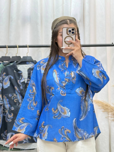 شومیز ترند ایتالیایی جلو بسته پارچه لینن ایتالیایی گرم دارناموجود